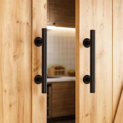 Set De 2 Manijas 30cm Para Puerta Corrediza Tipo Granero Negro