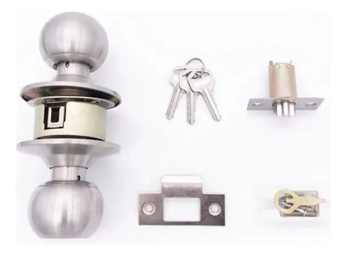 Cerradura De Pomo Acero Con Llavín Para Puertas De Interior Plateado