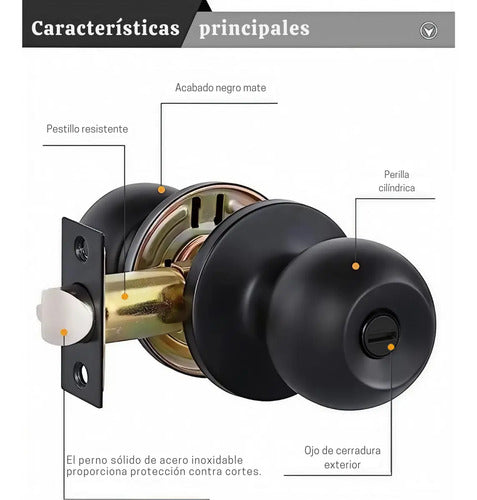 Cerradura De Pomo Sin Llave Para Puerta Interior Negro