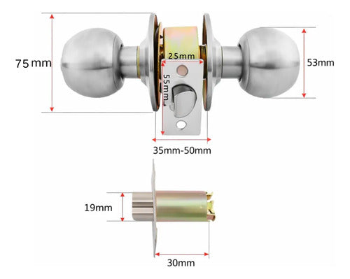 Cerradura De Pomo Con Llave Para Puertas De Interior Acero